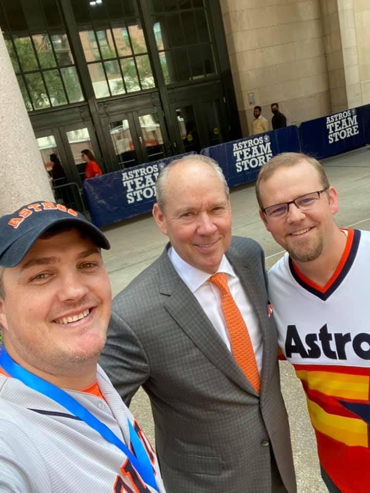 My buddy Casey and I took a quick walk to Minute Maid today just to check things out. As we were leaving, Jim Crane, the owner of the Houston Astros walks out and graciously agrees to a quick picture with us. That was cool and all but let me tell you what I saw next that is the sign of a great leader and owner...